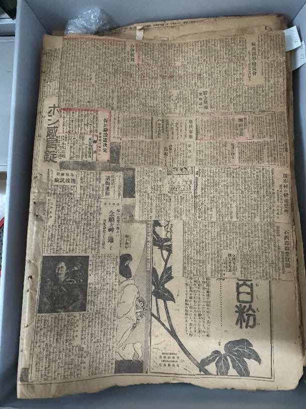 浜田市地域おこし協力隊ブログ 郷土資料整理【浜田市/竹中 久留美】 2025年11月12日 今回の活動【ミッション】中央図書館に残る郷土資料『※大島 幾太郎寄贈文書』の整理今月の主な業務内容は、大島氏寄贈の文書である新聞記事スクラップの補修であった。※大島 幾太郎(1871~1949年)・・・浜田市真光町に生まれ石見地方の小学校で教員や校長を務めた。その一方、郷土史家として石見地方の歴史を研究し、大きな功績を残した。 <文書箱の中>修復した際の糊が下の紙につかないように浮かせてある 古いものは明治30年代で、新しいものと言っても昭和の初め。100年経過の新聞紙は触るだけでパラパラと崩れるモノもあり、既に文書箱内で崩れているモノもあり・・・印刷された情報は時代を経ているだけでもきわめて貴重とは思うが、それを現代人に読ませるまでの新聞紙の耐久性は・・・。その補修はとてもチャレンジングでした。 個人の活動では、論文資料の収集のために有福温泉に調査に行きました。 いずれは温泉にも行ってみたいのですが、今回は建物・道路等の調査のみ。 重要な資料は中央図書館で見つけられました。図書館万歳である。 感想郷土資料整理と言っても、私自身浜田について知らないことばかりで、見るもの聞くもの全て新しく、日々脳内成長!といった気分で生活できています。やっぱり経験論者は毎日楽しく生活できる!!(はず) 今後について 10月でやっと私担当分?の一通りの郷土資料が整理できました。当初の作業対象の文書以外にも状況が類似する資料が貴重資料庫内にあり、しばらくはその調査や補修をした方が良いかもしれません。